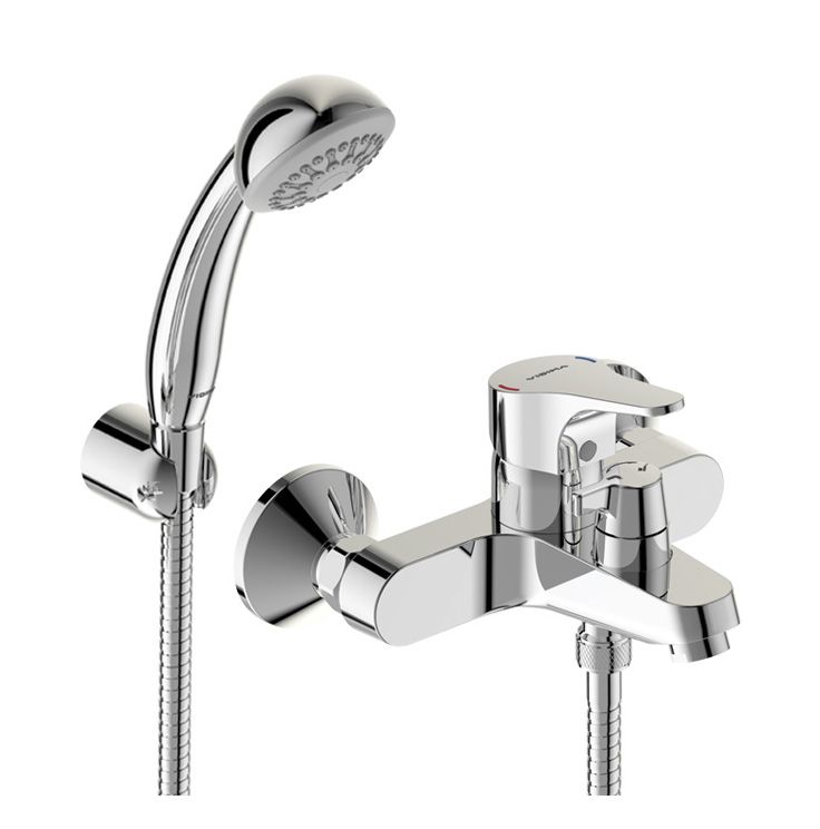 NEXT Настенный смеситель для ванны/душа, с душевым гарнитуром (душевая лейка Ø70 мм, металлический шланг 1500 мм, держатель для лейки).Смеситель однорычажный