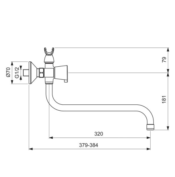 QUADRO Смеситель для ванны/душа, поворотный излив 320 мм, душевой гарнитур в комплекте (душевая лейка Ø70 мм, металлический шланг 1500 мм, держатель для лейки).Смеситель двухрычажный