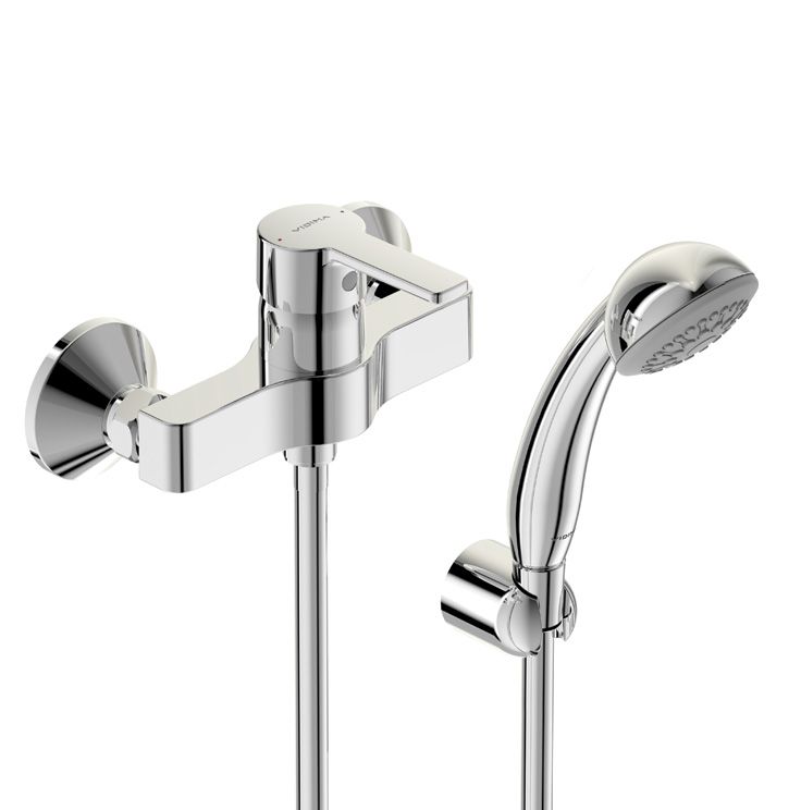 UNO Настенный смеситель для душа, душевой гарнитур в комплекте (душевая лейка 70 мм, металлический шланг 1500 мм, держатель для лейки).Смеситель однорычажный