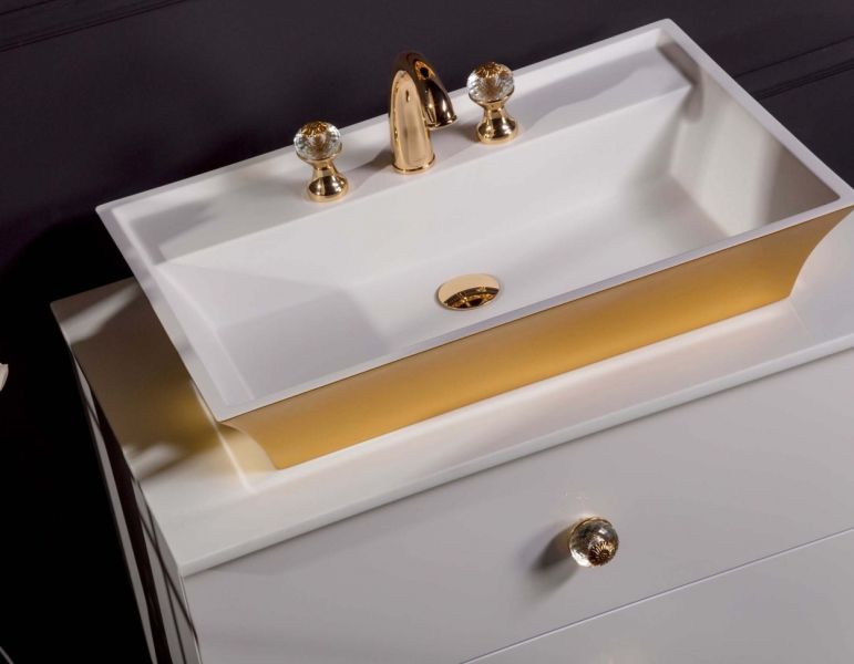 Столешница изготовлена из инновационного материала Solid Glass, в состав которого входит мраморная крошка и стекло. Материал черезвычайно прочен, не оставляет следов царапин и обладает неповторимой глубиной белого цвета.