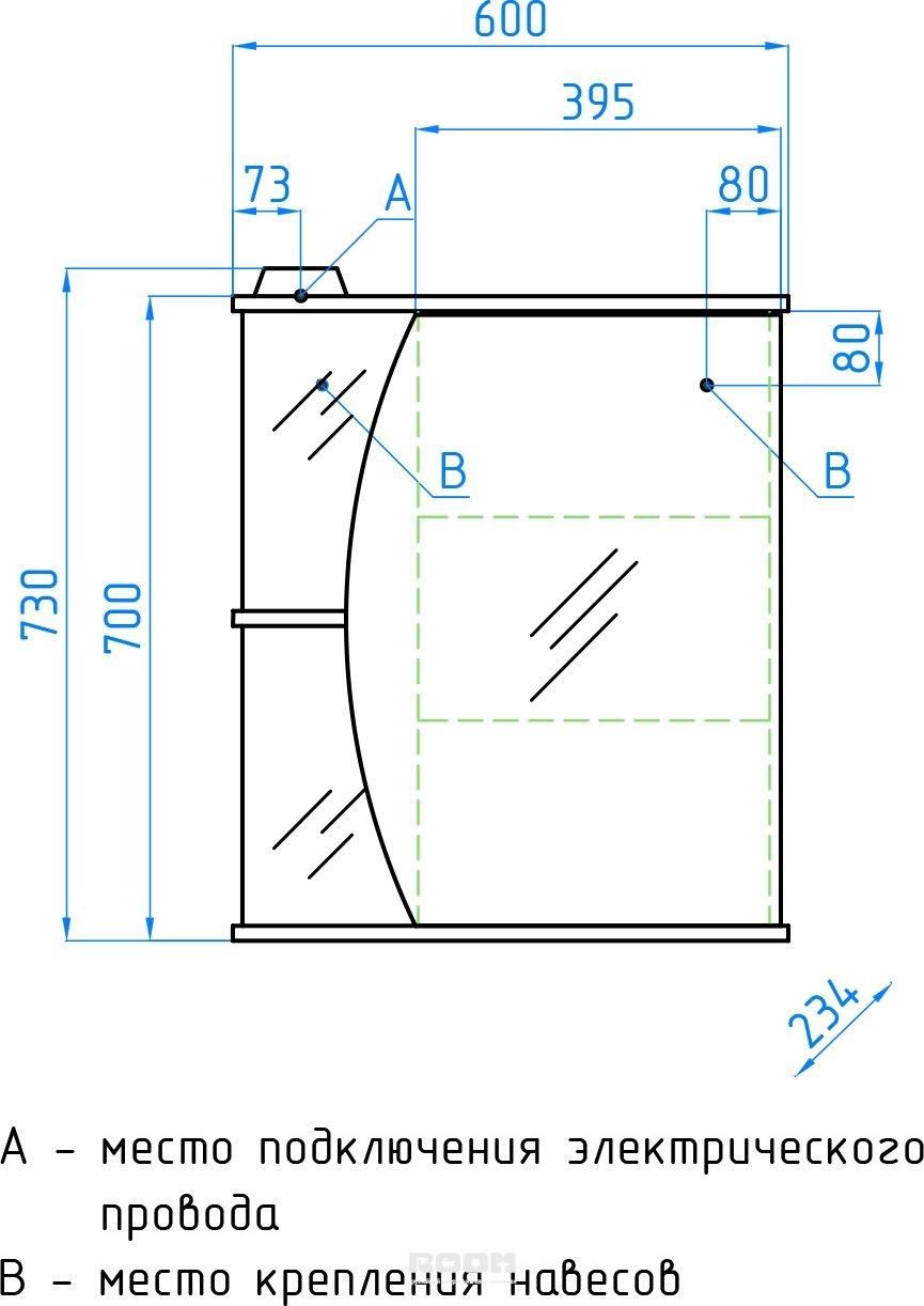- Тип:зеркало-шкаф с подсветкой