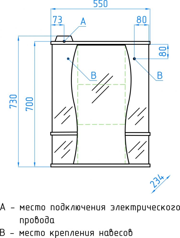 - Тип:зеркало-шкаф с подсветкой