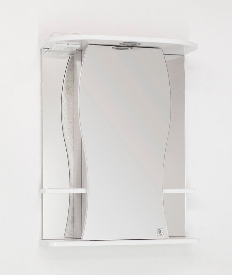 Зеркало-шкаф бренда "Style Line" коллекции "Лорена 55/С" с высокоточной обработкой кромки фацетом и подсветкой. Фурнитура - хром. Кромка зеркала "Лорена 55/С" зашлифована, что защищает от порезов. Лазерная гравировка фирменного логотипа. Край полочек имеет трапецевидную еврокромку. Эксклюзивный декор "Луино" - ламинация внутренней стороны изделия