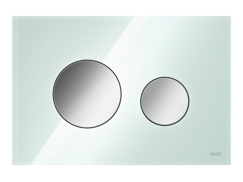 Панель смыва для смывных бачков TECE, фронтальная или верхняя установка. Плоская стеклянная панель смыва с двумя установленными на пружинах клавишами смыва. Подходит для монтажа на уровне стены вместе с монтажной рамкой унитаза (например: 9240649). Совместима с контейнером для гигиенических таблеток Размеры (Ш x В x Г): 220 x 150 x 11 мм Монтажная рамка для установки панели смыва на уровне стены в комплектацию не входит.