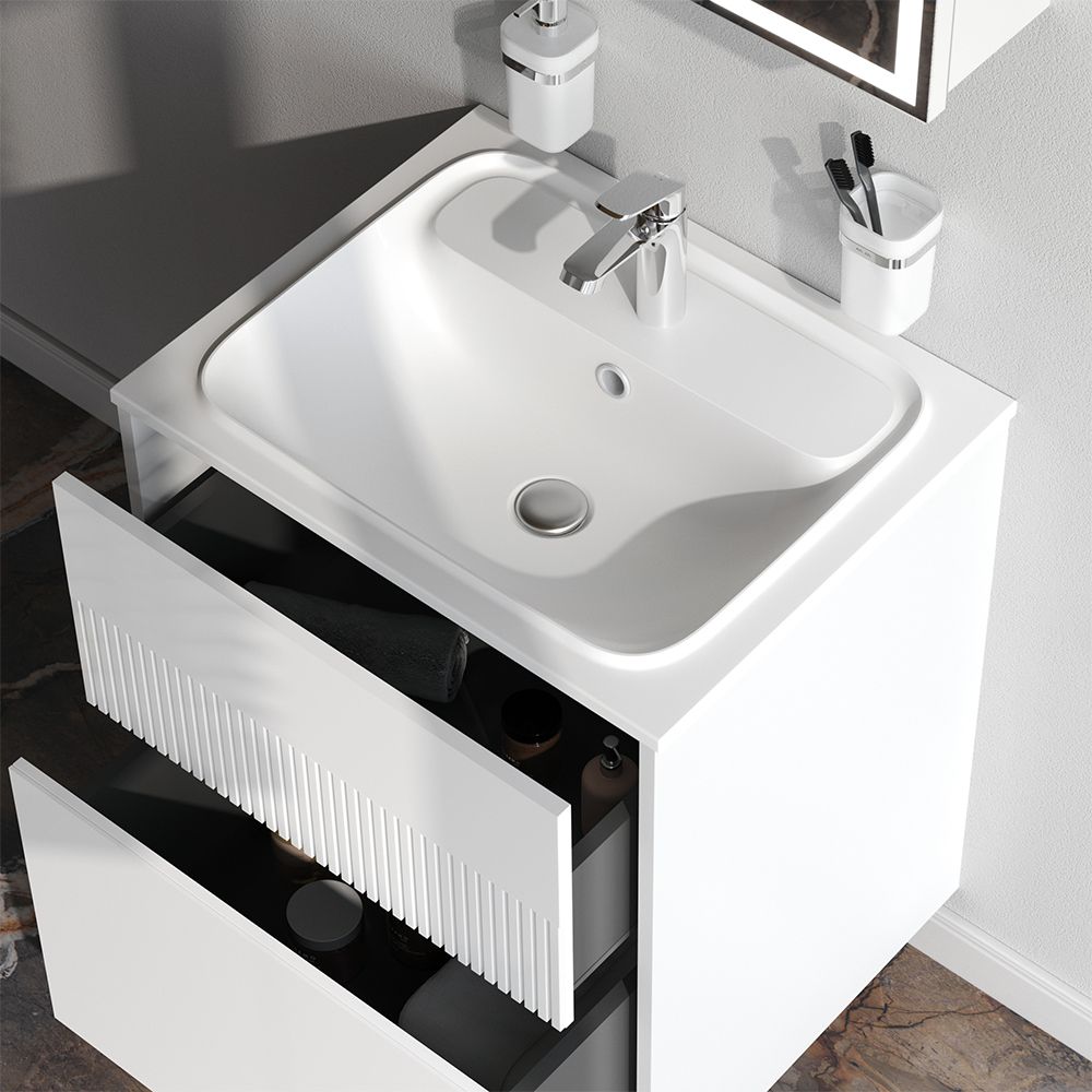 Тумба под раковину AM.PM Func M8FFUX0602WM 60 смЧетыре дизайнерских сочетания от всемирно известной студии Design3 (Германия): белый глянец, белый матовый, дуб крафт, черный матовый.Удобный выдвижной ящик и вместительная открытая ниша позволяют хранить все необходимые средства под рукой. Невероятно мягкое открытие и закрытие благодаря направляющим скрытого монтажа с системой soft close.Универсальный монтаж подвесной и напольный (комплект ножек приобретается отдельно).Экологически чистые и удивительно долговечные полиакриловые эмали – специальная технология покраски в 7 слоев превосходит технологию нанесения автоэмали у ведущих немецких марок и обеспечивает насыщенный цвет в течение всего срока службы (от 10 лет).