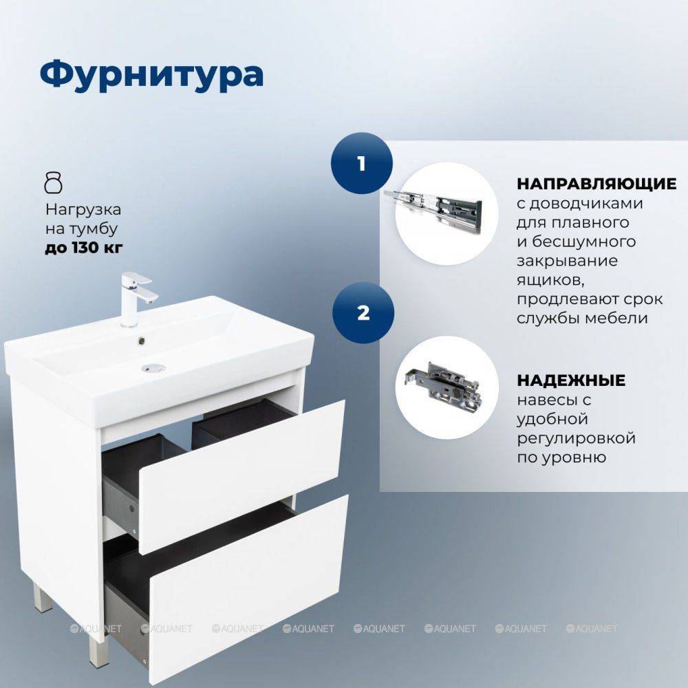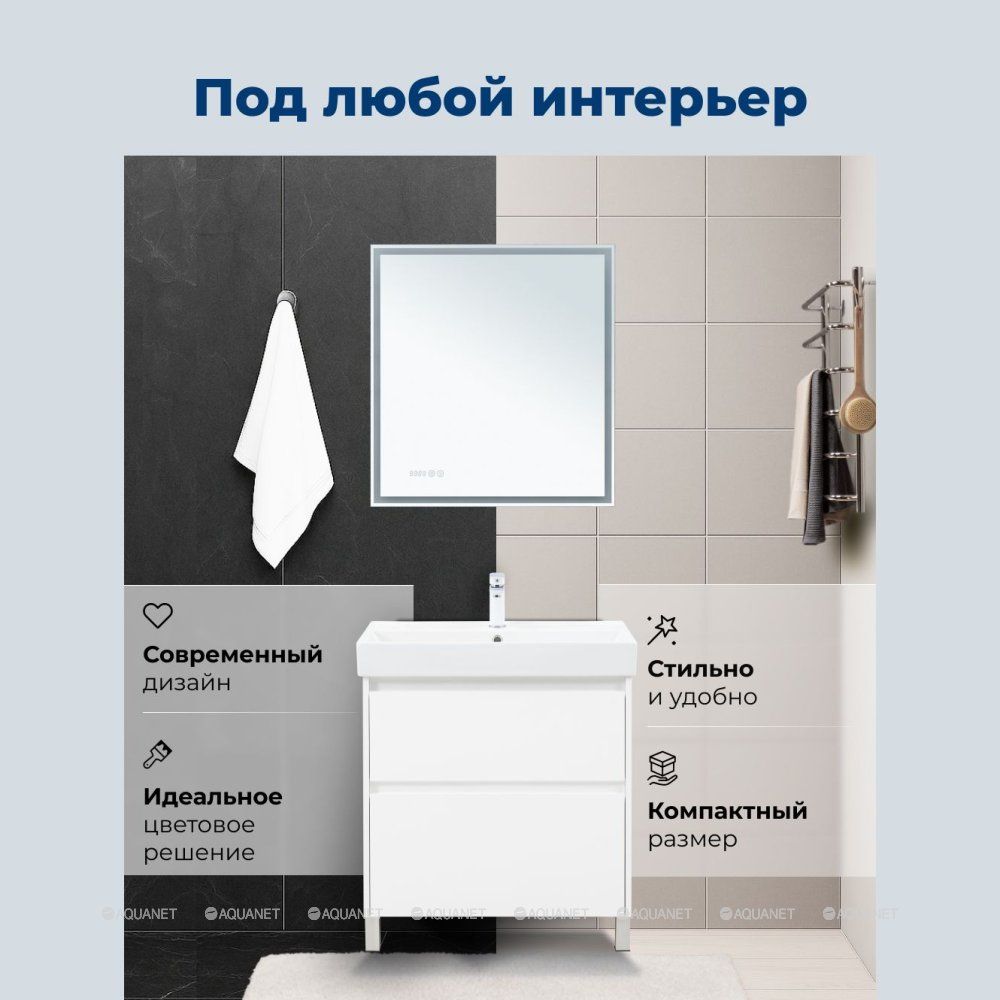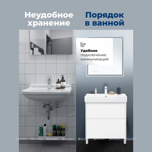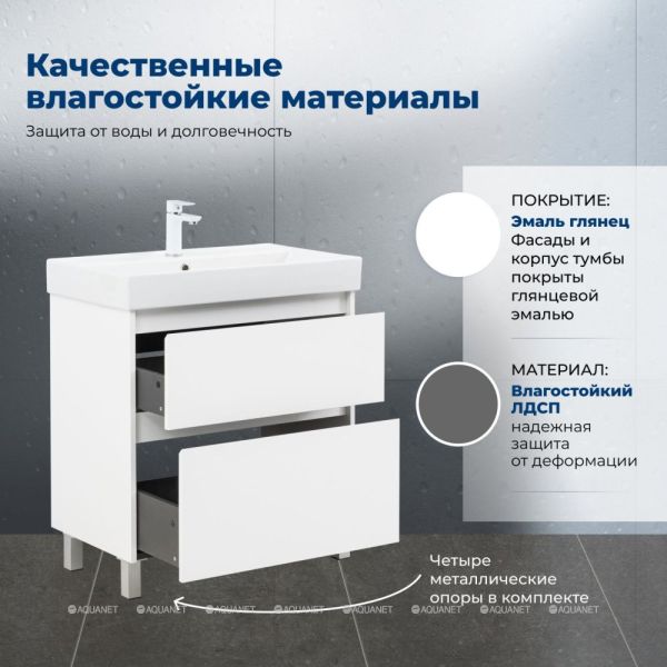 Тумба под раковину Aquanet Nova Lite 2.0 75 напольная, белый глянец Компактная и стильная ... Подробнее