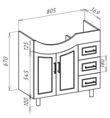 Тумба под раковину Bellezza Коралл 85см правая белый 00000001365 купить
