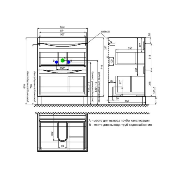 Два выдвижных ящика с механизмом плавного доведения и перекатной организатор в нижнем ящике – для удобного хранения косметики и полезных мелочей.
