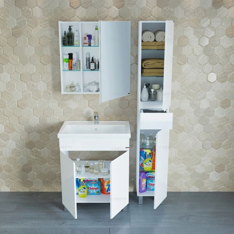 Тумба для комплекта СанТа подойдет как для просторной ванной комнаты, так и для небольшого помещения. Напольный способ установки производится непосредственно на пол, при этом конструкция максимально устойчива при серьезных физических нагрузках.В производстве используют только качественные влагостойкие материалы (ВЛДСП), в составе которых полностью отсутствуют опасные вещества. Серия Венера отличается превосходным дизайном с соблюдением всех ключевых элементов современного стиля. Основным цветом, в котором выполнена тумба под раковину СанТа является белый, гармонирующий с большинством интерьерных решений. Тумба под раковину предусматривает удобную и вместительную систему хранения, состоящую из полок и дверей.Страной бренда СанТа является Россия, все товары производятся с выполнением соответствующих стандартов качества, что позволяет быть полностью уверенными в долговечности и надежности. Тумба для комплекта СанТа поможет сделать уютным любой интерьер и создать идеальную ванную комнату.