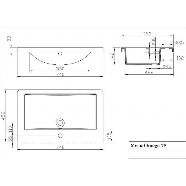 Умывальник Runo мебельный SoloGrande Omega 75 (УТ000001838)