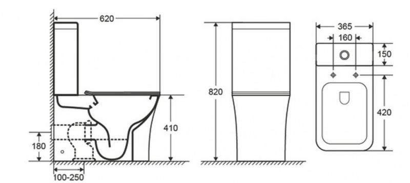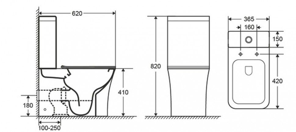 • Прилегание унитаза к стене: