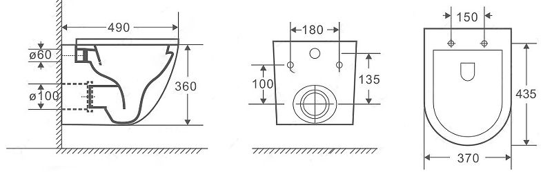 • Прилегание унитаза к стене: