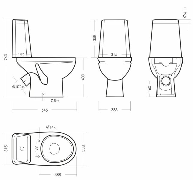 Размеры унитаза-компакта: 338 x 645 x760