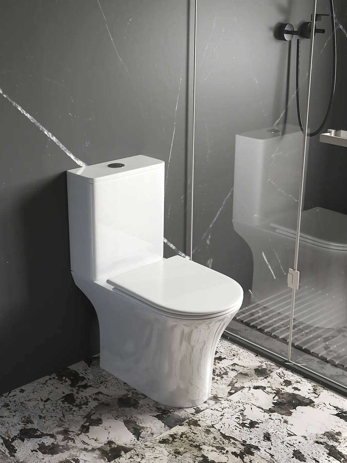 Использование нижней подводки воды позволило добиться практически бесшумного наполнения бачка водой. А сами шланги скрыты от посторонних глаз удобным дизайном чаши унитаза.