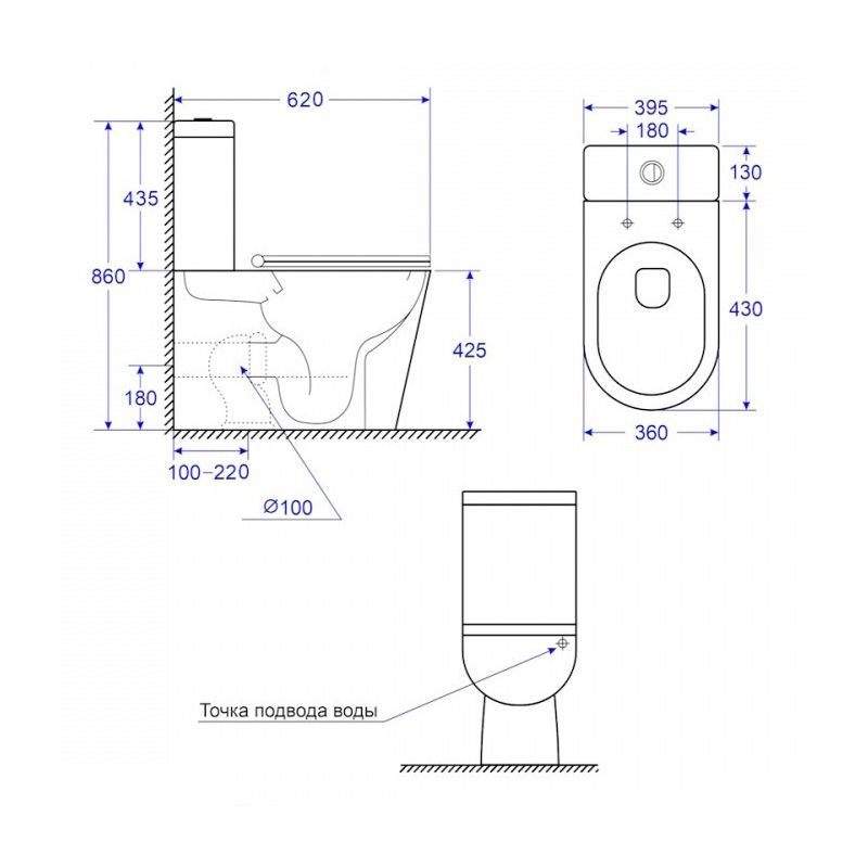 - Подвод воды:сзади
