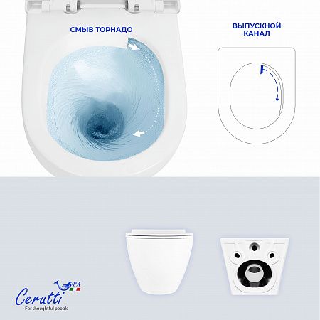 Унитаз подвесной Ceruttispa AMICI Aria Tornado CT11388 безободковый (490х335х340) купить