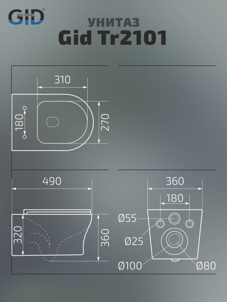 Унитаз подвесной Gid Tr2101 62232Y белый 49x36x36 купить