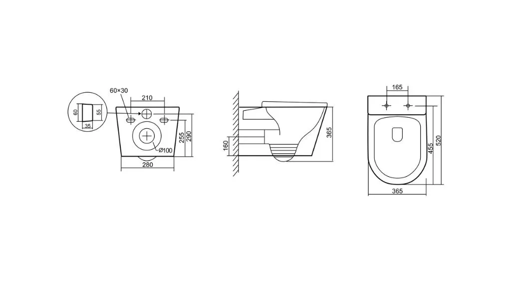 - Прилегание унитаза к стене:вплотную