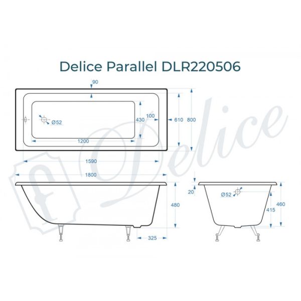 Ванна чугунная Delice Parallel DLR 220506 180x80см белый
