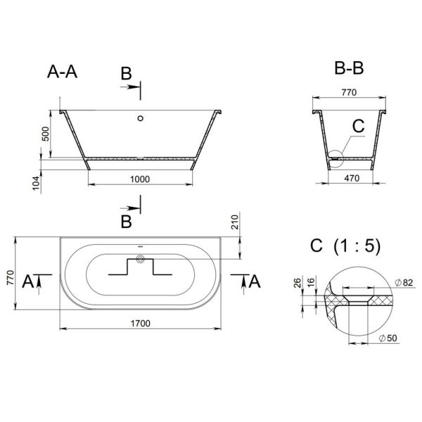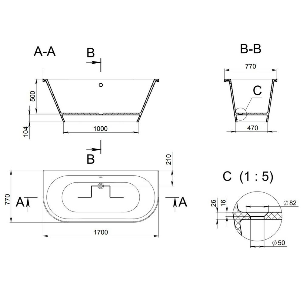 Ванна Holbi Galatea 170x77см бетон 2.01.003.44.4 купить
