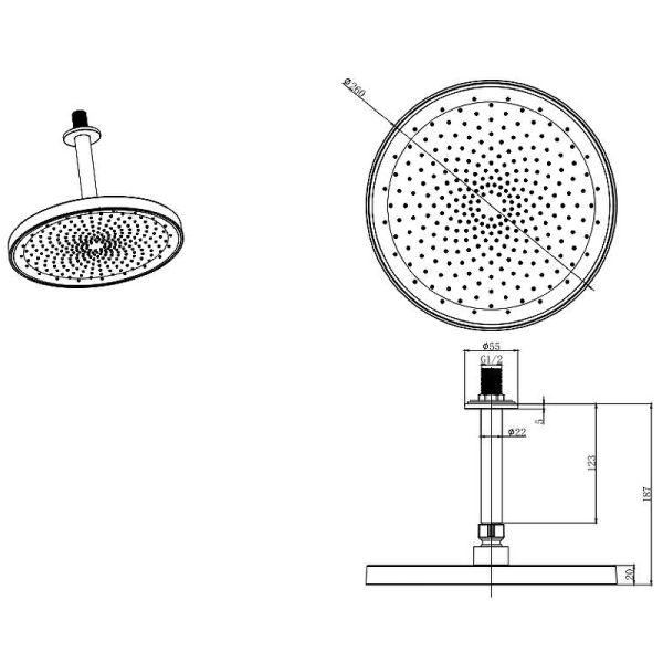 Диаметр верхнего душа: 260 мм.