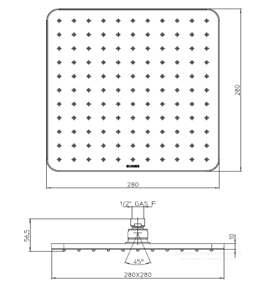 Верхний душ Bossini Cosmo размером 280x280 мм представляет собой идеальное сочетание стиля и функциональности для вашей ванной комнаты. Этот душ предлагает не только превосходную производительность, но и современный дизайн, который добавит элегантности в интерьер вашего пространства. Оснащенный функцией самоочищения, он существенно упрощает уход за изделием, предотвращая накопление загрязнений и обеспечивая длительное сохранение его первозданного вида.