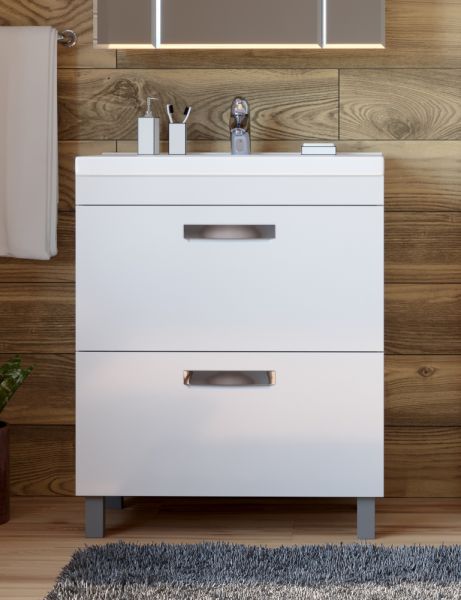 2 ящика; ручка врезная металлическая хромированная, опоры квадратные регулируемые.