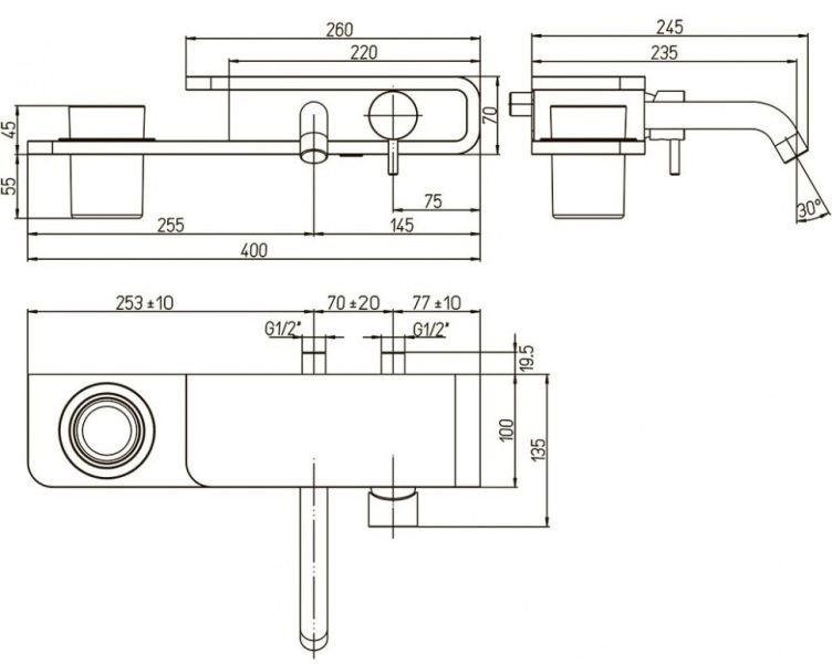 • Дизайнерский стаканчик для гигиенических принадлежностей в комплекте.