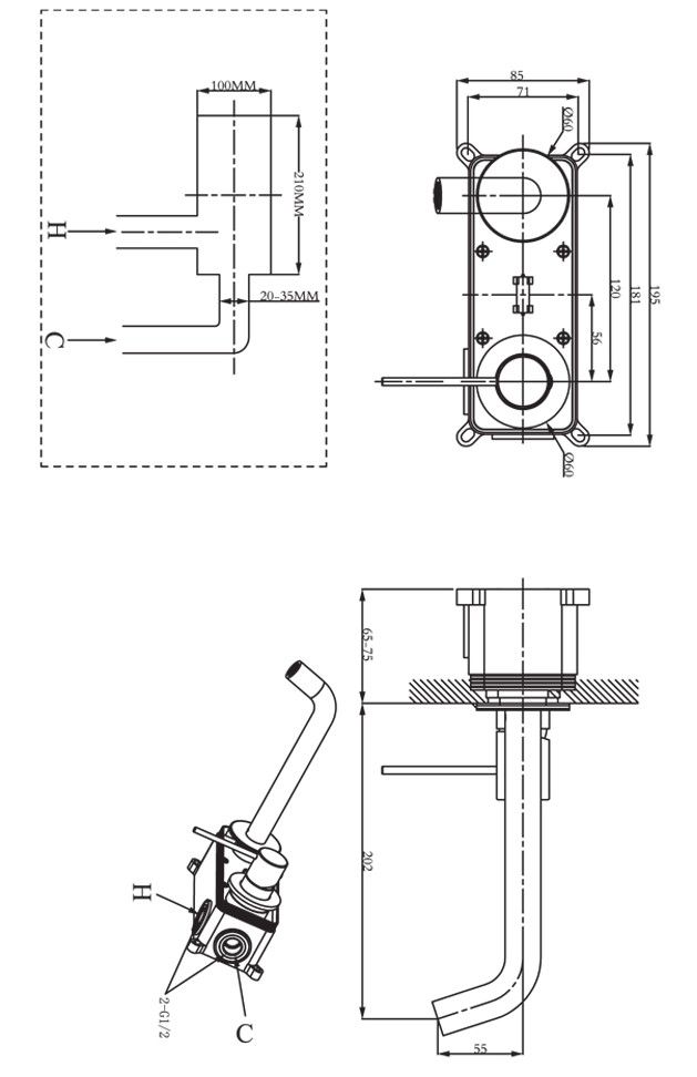 Смеситель для раковины встраиваемый Raiber premium,коллекция Graceful