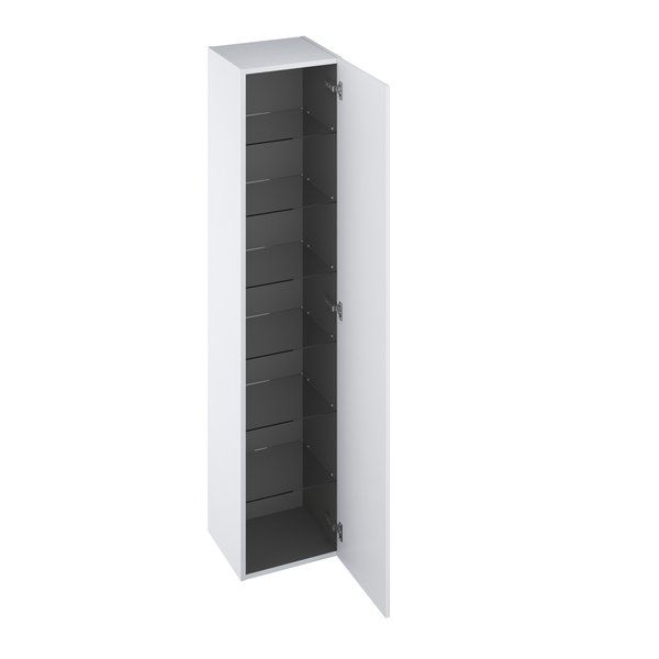 В шкафу шесть полок из дымчатого стекла. Шкаф снабжен ручкой оригинальной конструкции белого цвета, в качестве дополнительной опции можно установить ручку с хромированной отделкой.Размеры (ш х г х в): 35 x 160 x 32 см