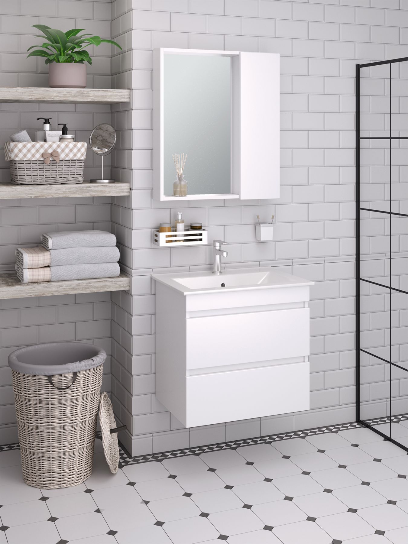 Зеркальный шкаф Runo белый Манхэттен 65 (00-00001044)