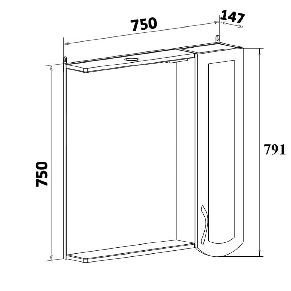 Зеркальный шкаф Runo правый Неаполь 75 (00-00001031)