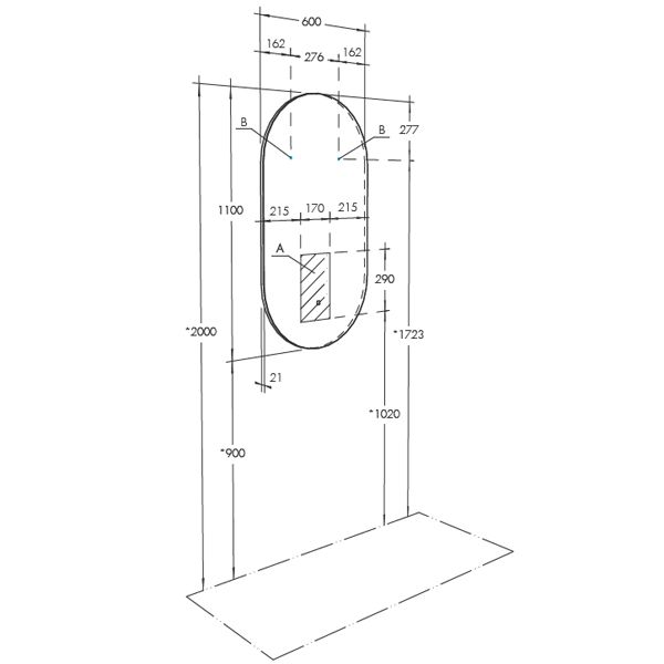 Комплектация: LED-подсветка по периметру, touch-выключатель с диммером - 1, система крепления.