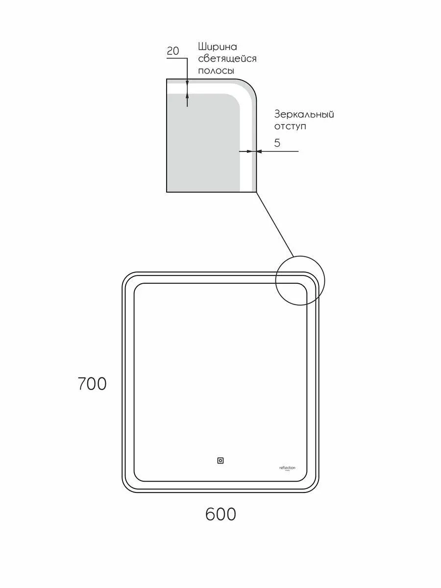 Зеркало Reflexion Magic с LED подсветкой и сенсорным выключателем 600*700мм