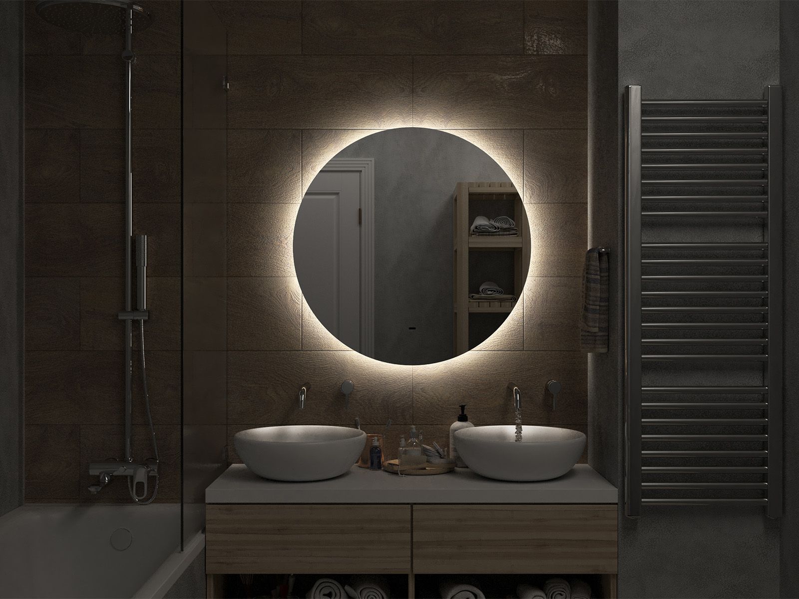 Зеркало с подсветкой для ванной комнаты — это элемент интерьера, который сочетает в себе функции, эстетику и современный дизайн. Его изящная форма и тонкие линии легко вливаются в любое пространство, создавая атмосферу утонченности и уюта.Интегрированная светодиодная подсветка обрамляет зеркало, даря мягкий, рассеянный свет, который не только позволяет удобно наносить макияж, но и наполняет ванную комнату теплом и позитивной энергией.Классический дизайн позволяет использовать его в различных стилях – от минимализма до современного эклектичного оформления. Оно прекрасно вписывается в любую цветовую гамму, будь то нейтральные тона или более яркие акценты.