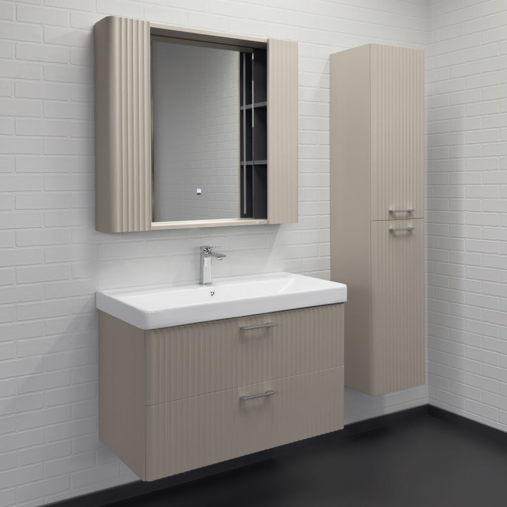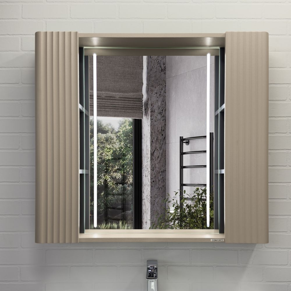 Зеркало-шкаф Comforty Ангара-90 дуб латте с LED подсветкой и антизапотеванием купить