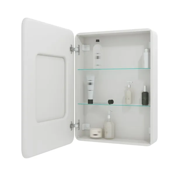 Стеклянные полки легко регулируются по высоте, а розетка позволит удобно использовать электроприборы. Хромированные крепления не ржавеют при длительной эксплуатации в условиях повышенной влажности. Защита по стандарту IP44 обеспечивает безопасное использование устройства в условиях повышенной влажности